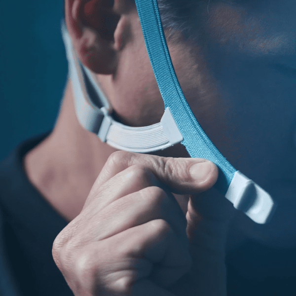 It begins with our easy-to-use SwingFit™ headgear. Simply place the cushion on your nose and swing the headgear around your head to secure with one click.