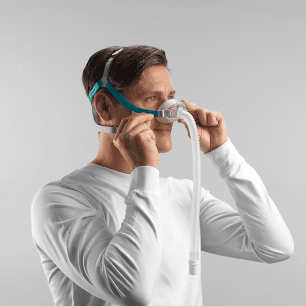 It begins with our easy-to-use SwingFit™ headgear. Simply place the cushion on your nose and swing the headgear around your head to secure with one click.